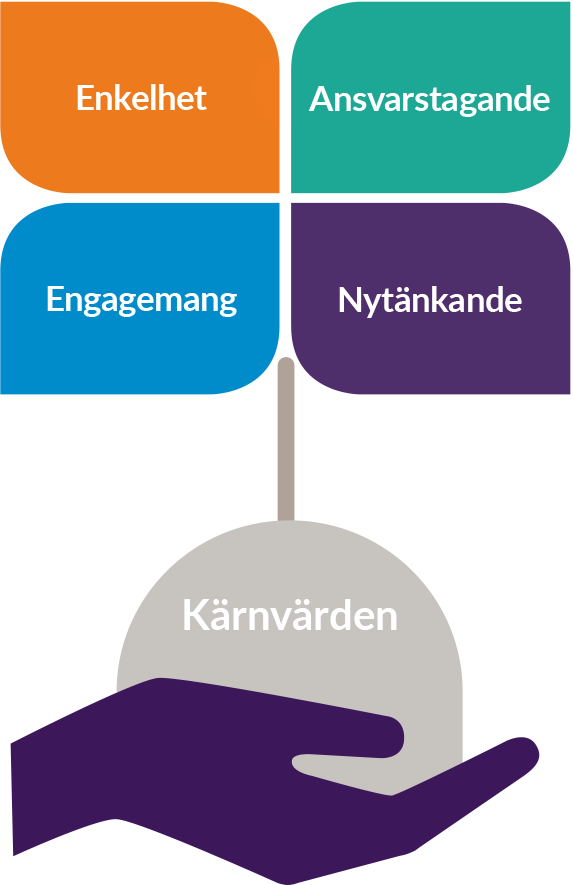 AddLifes kärnvärden är: Enkelhet – Ansvarstagande – Engagemang – Nytänkande. AddLifes framgång bygger på en välförankrad företagskultur. Koncernens kärnvärden styr AddLifes entreprenöriella affärsmodell.