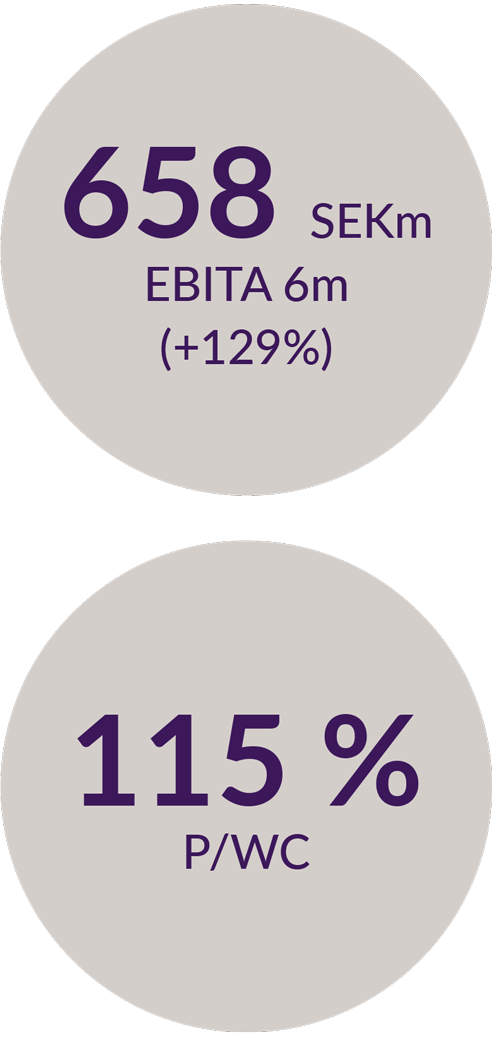 - EBITA increased by 129 percent to SEK 658m (287), corresponding to an EBITA-margin of 16.4 percent (12.5).