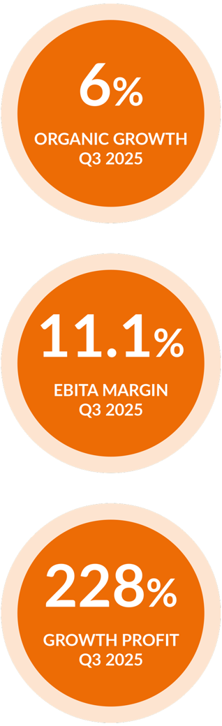 AddLife’s companies performed strongly during the quarter. Organic growth was solid, margin improvement continued, earnings increased significantly, and the debt ratio was reduced, in line with our priorities and ambitions. |